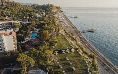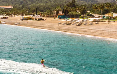 Для семейного отдыха лучше подойдет курорт с большой территорией, ухоженными садами и видом на горы, чем размещение в центре города – там шумно и суетно. Природа в Турции прекрасная, не лишайте себя ее красот. Ищите свой оазис в какой-нибудь бухте среди сосновых лесов и скалистых гор. В Турции много галечных пляжей, но на курорты часто завозят песок – в таком случае специальная обувь для пляжного отдыха не понадобится.