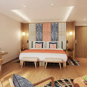 На территории курорта вас ждут небольшие бунгало высотой 3-4 этажа, выполненные в колониальном стиле с использованием экзотического дерева и популярных цветовых сочетаний.
